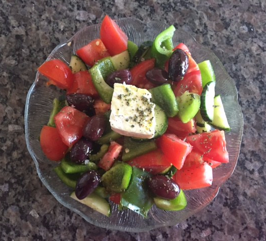 For Pappou’s Greek Salad, quality ingredients are the key. Home-grown or local vegetables are best. If you can’t find local or they are out of season, opt for organic where possible. Olive Oil should be extra-virgin cold pressed, and have a slightly green colour. The greener the better!